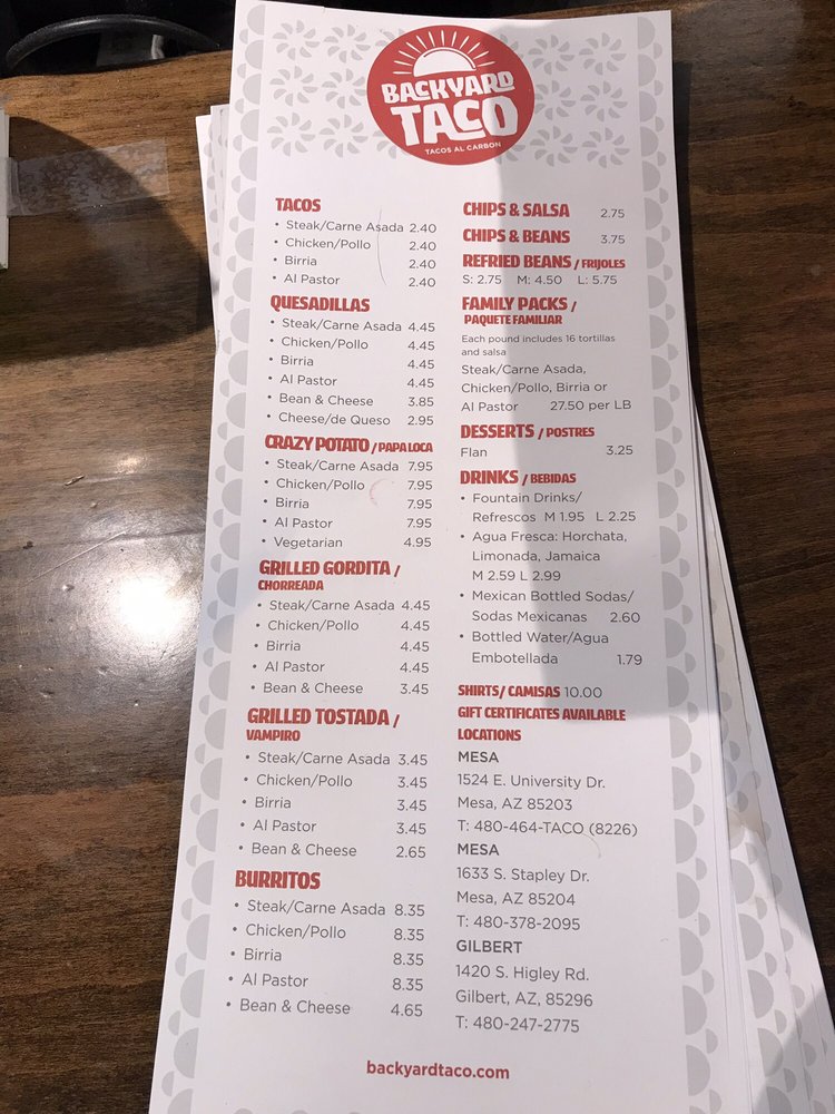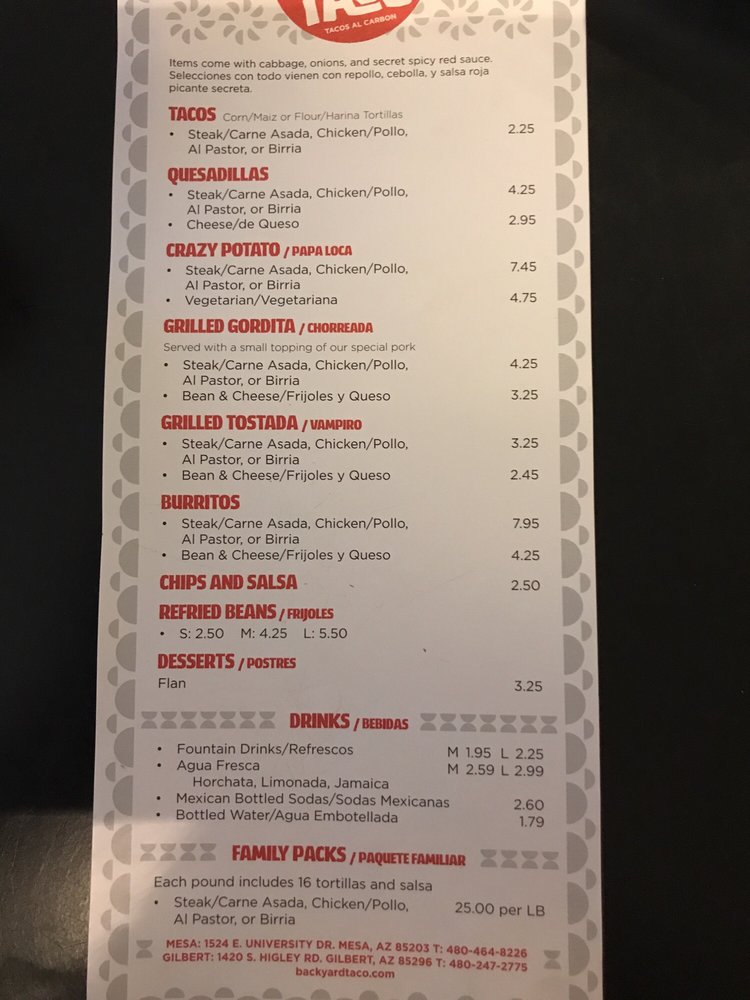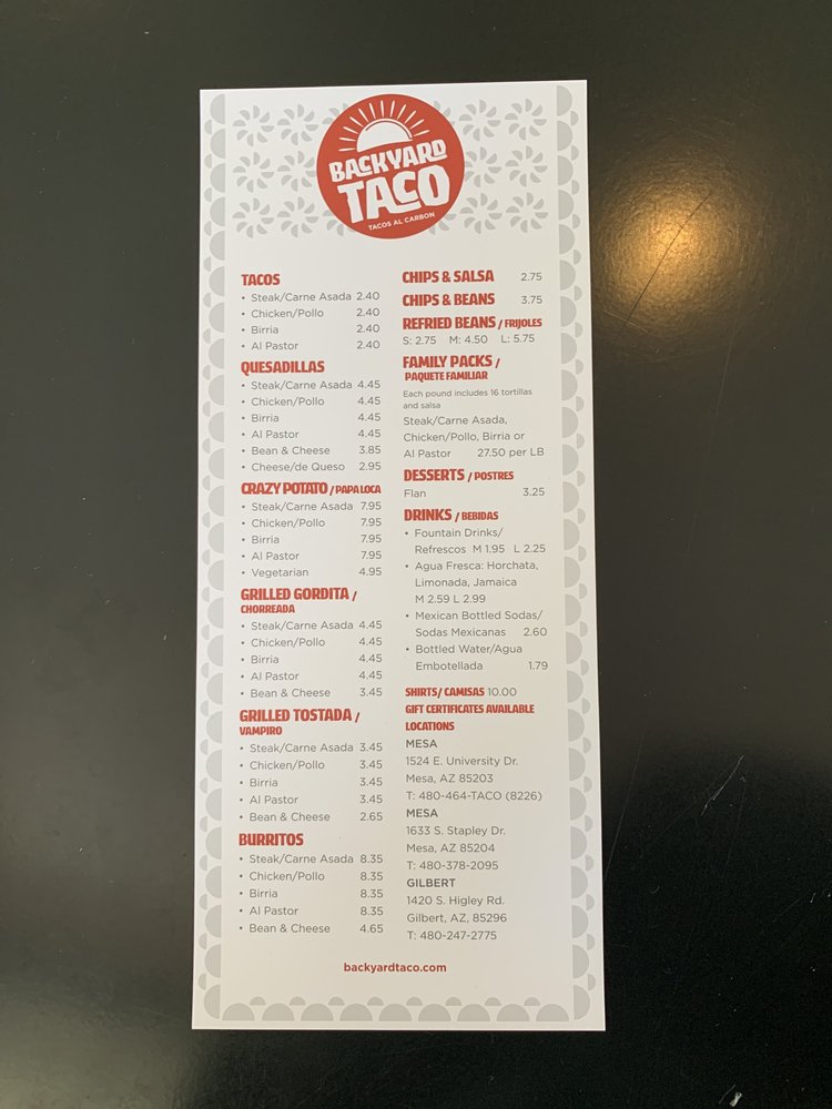 With options catering to various dietary needs, including vegan choices, Backyard Taco - Mesa North is designed to be accessible and enjoyable for everyone!