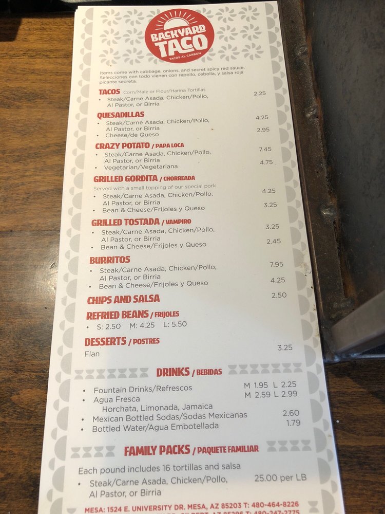 Welcome to Backyard Taco - Mesa North, a vibrant Mexican eatery located in the heart of Mesa, AZ. This lively spot is known for its casual atmosphere, perfect for families and groups alike. Whether you're opting for delivery, takeout, or dining in the cozy indoor or heated outdoor seating, the experience is satisfying.